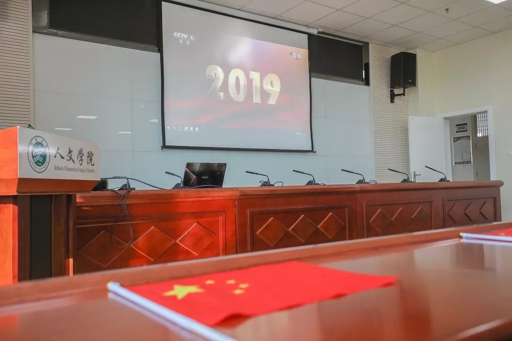 9点10分,在阅兵式正式开始之前,老师和同学们提前来到了会议室,观看阅兵式之前的准备纪录片,共期此次阅兵式。